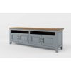 Masivní televizní stolek PROVENCE je spojením bukového a dubového dřeva. Dubové dřevo (horní deska) je ošetřeno lakem a bukové dřevo je ošetřeno akrylovou barvou v šedomodré barvě.