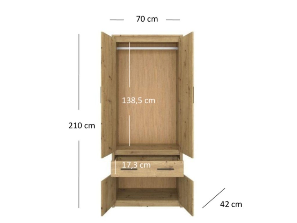 ALKRON skříň 4D1S dub artisan – V: 210,5 × H: 50 × Š: 86,6 cm