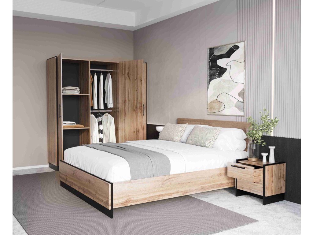 Kolekce AMINO je vyrobená z kvalitních laminovaných desek v barvě dub Wotan/černá (hrany jsou vyrobené z PVC). Úchytky jsou kovové a nohy plastové. Zásuvky disponují kuličkovými pojezdy s plným výsuvem.