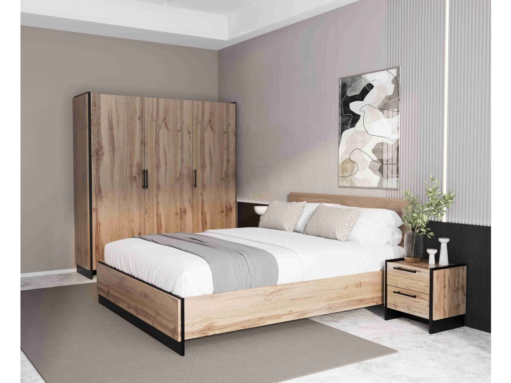 🛏️ Vytvořte si ložnici snů: Skříň AMINO tvoří dokonalý set s manželskou postelí AMINO 160, praktickými nočními stolky a prostornou komodou.