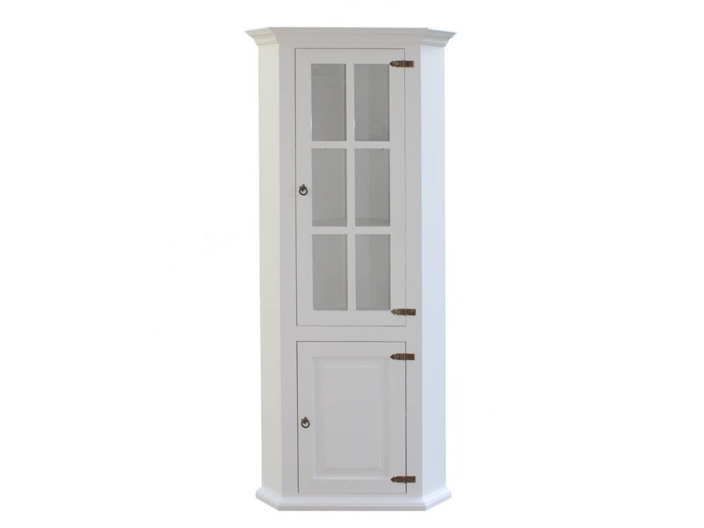 Rustikální vitrína SWEET HOME nabízí prosklenou část s policemi na uložení dekorativních předmětu. Ve spodní části tato nádherně zpracovaná rohová skříňka nabízí skříňku s policí.