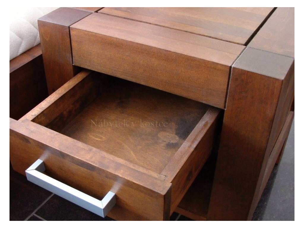 Postel Moderno dodáváme spolu se dvěma masivními nočními stolky se šuplíkem.