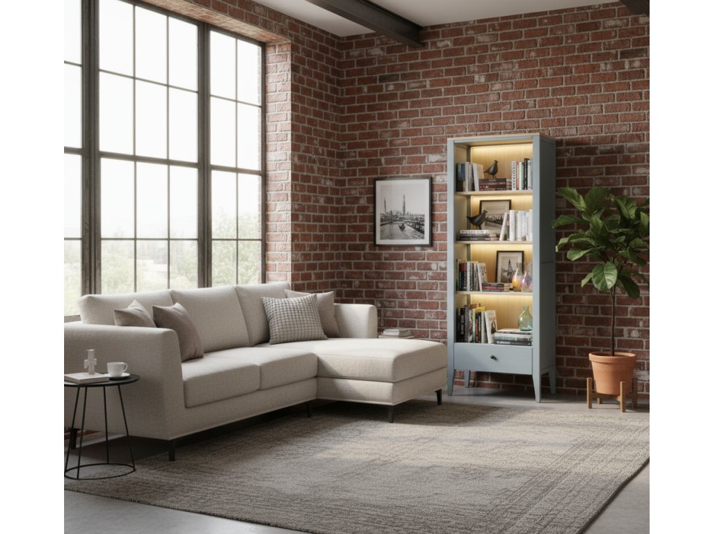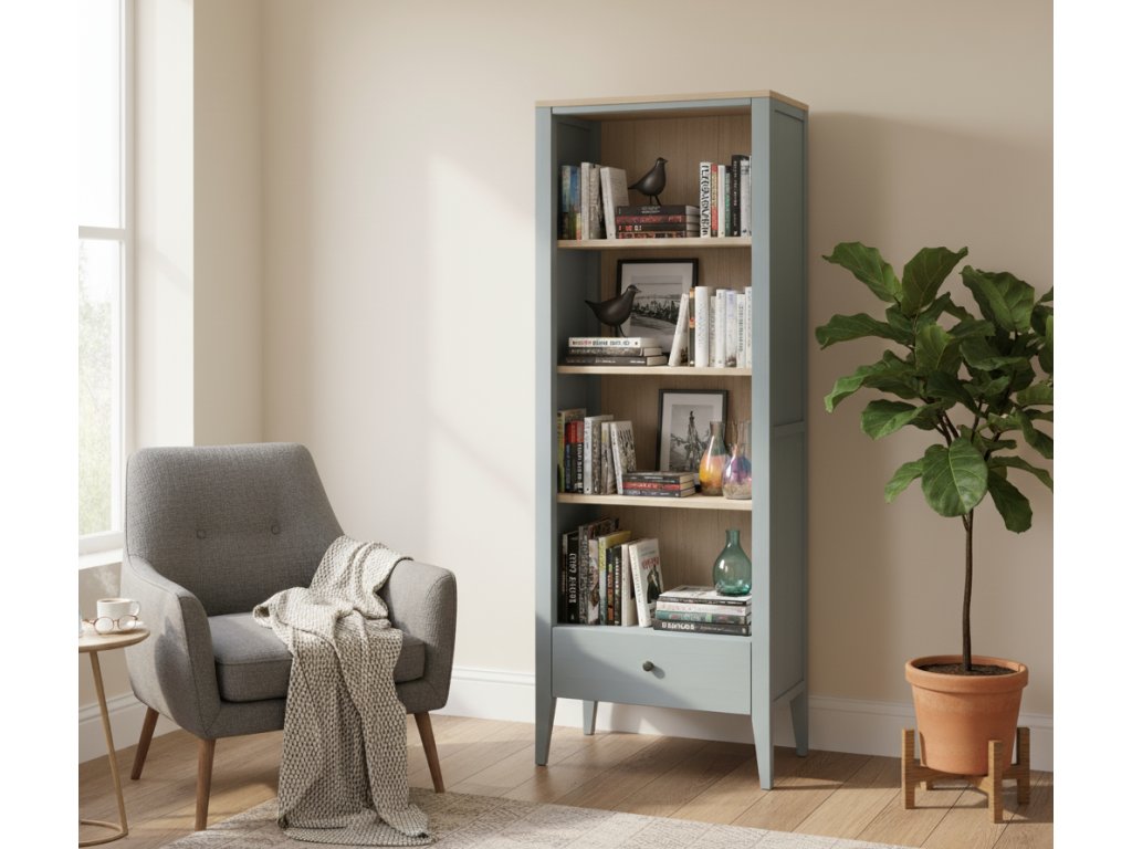 Knihovna ROMA RT1 v elegantní šedomodré barvě působí moderně a přitom útulně. Vyrobena z bukového masivu, poskytuje stabilitu a praktické využití v každém interiéru.