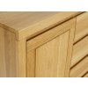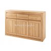 Buková komoda Amazonka kombinovaná se 3 zásuvkami a 3 dveřmi je vyrobena z přírodního pařeného bukového dřeva. Použitý materiál je 100% přírodní buk tloušťky 18 mm. Dno, boky a vrchní část jsou zpevněny tloušťkou 50mm. Celodřevěné zásuvky jsou na kovových ložiskových skrytých výsuvech, dovolující 90% otevření. Dveře a zásuvky jsou osazeny tlumičem dovírání. U dveří jsou použity kvalitní kovové samozavírací panty, které umožňují úhel otevření až 110°.