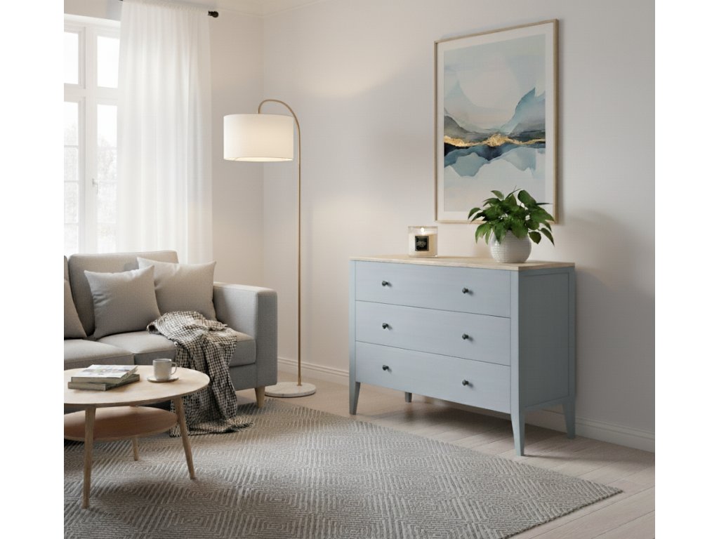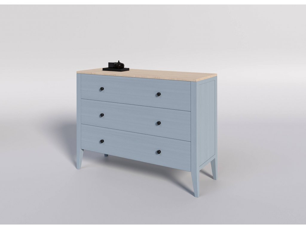 Komoda ROMA KT1 v šedomodrém provedení spojuje moderní barvu a pevnost bukového dřeva. Buková komoda ROMA KT1 se systémem tichého zavírání je moderní šuplíková komoda z masivu, která se prezentuje jednoduchými liniemi a krásnou dřevitou kresbou.