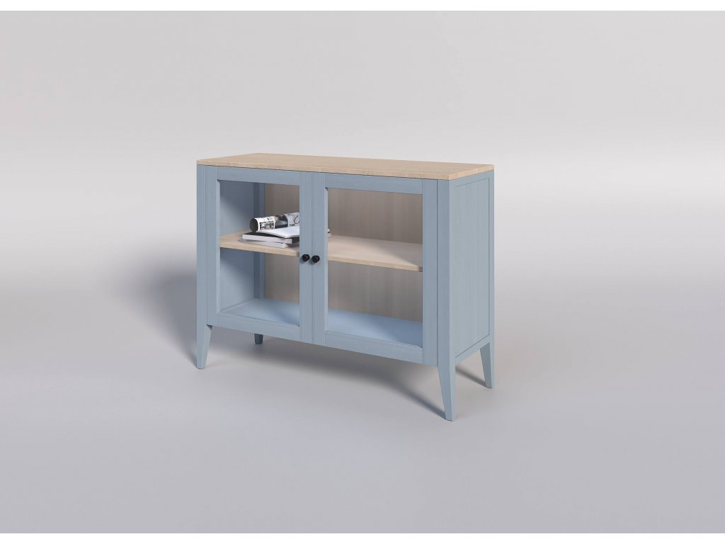 Buková komoda ROMA KT2 šedomodrá prosklená