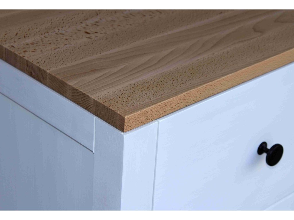 Masivní komoda ROMA White je povrchově upravena vodou ředitelnými akrylovými barvami, které zdůrazní jedinečnou dřevitou kresbu.