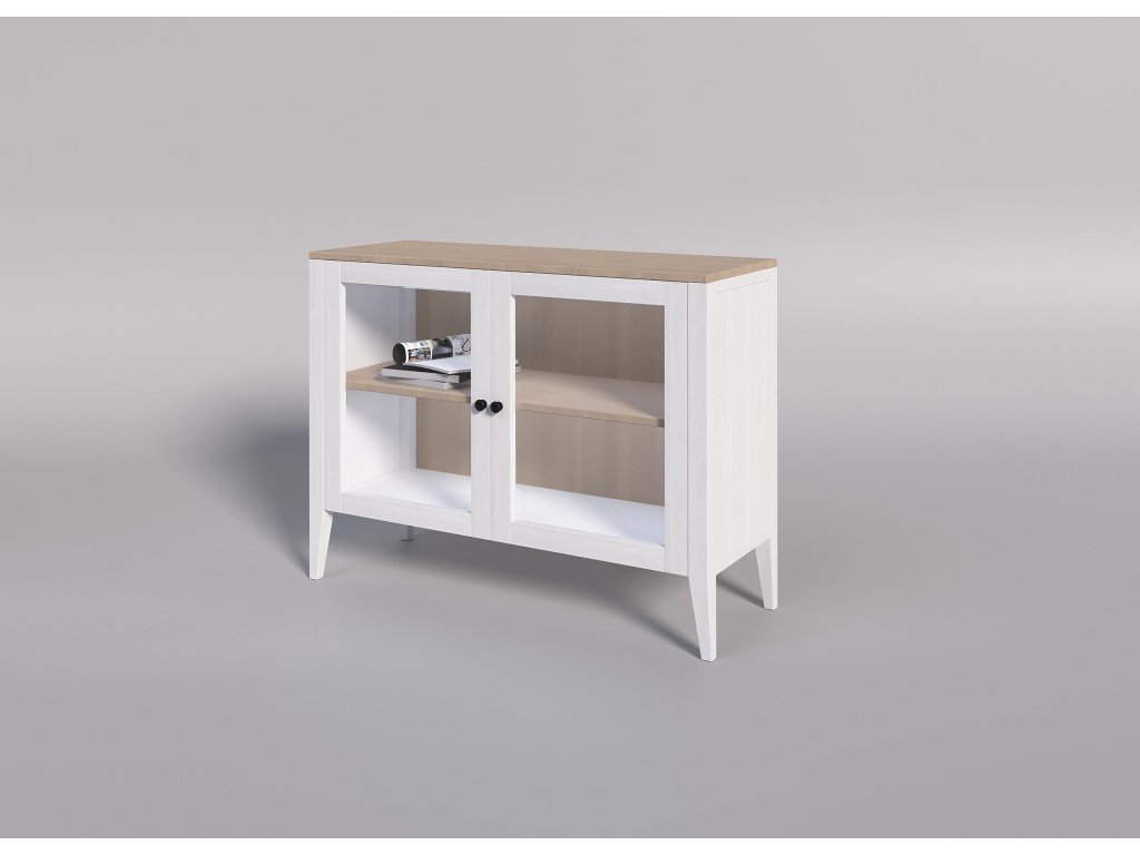 Masivní komoda ROMA White KT2 je moderní prosklená komoda z masivu, která se prezentuje jednoduchými liniemi a krásnou dřevitou kresbou.