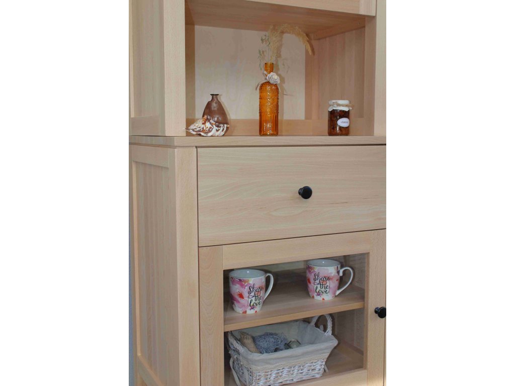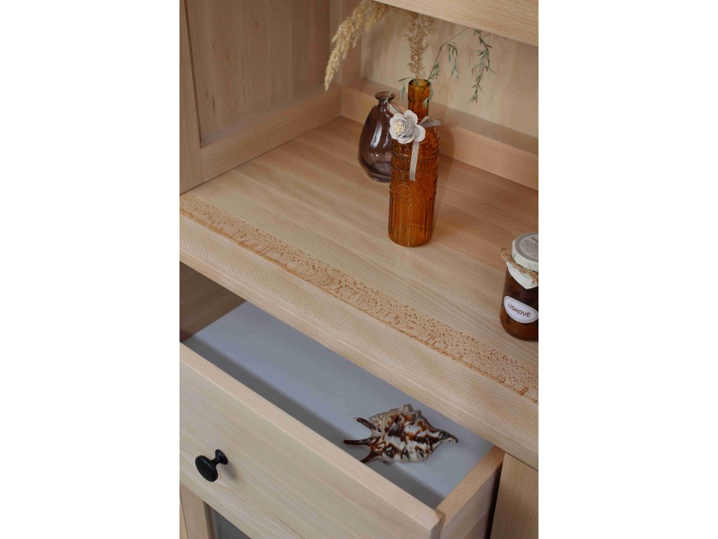 Kredenc ROMA KRT1 v přírodním bukovém provedení nabízí praktické úložné prostory a nadčasový design. Masivní kredenc ROMA je moderní kredenc z masivu, která může zároveň sloužit i jako stylová knihovna. Kredenc se prezentuje jednoduchými liniemi a krásnou dřevitou kresbou.