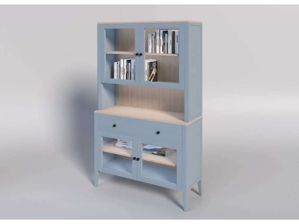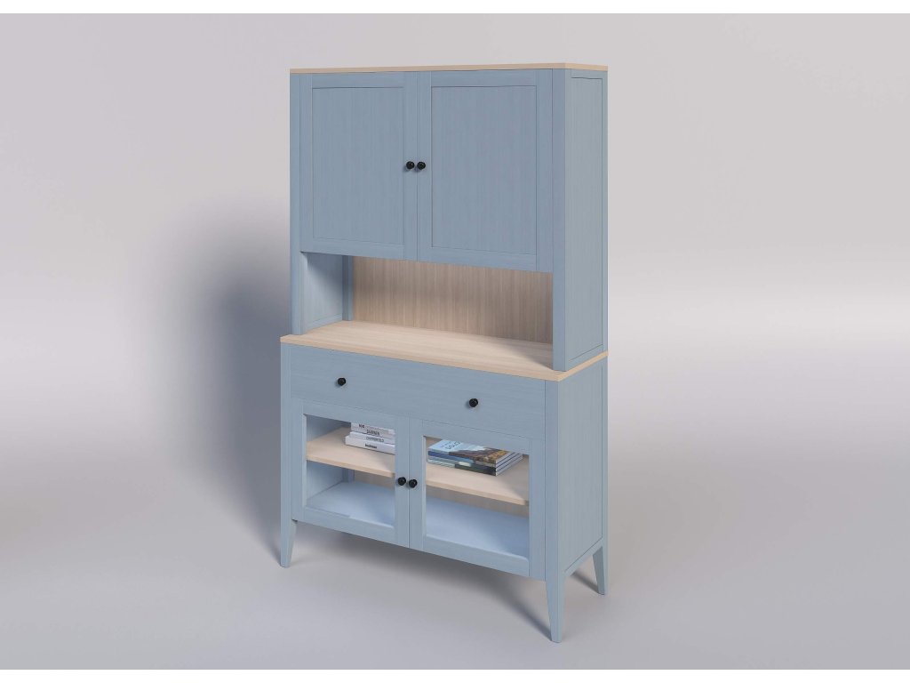 Kredenc ROMA KRT2 v šedomodré barvě působí elegantně a originálně. Masivní buk a výroba na míru garantují dlouhou životnost i kvalitu. Kredenc z masivního bukového dřeva ROMA KRT je moderní kus nábytku z masivu, který může zároveň sloužit i jako stylová knihovna nebo příborník. Kredenc se prezentuje jednoduchými liniemi a krásnou dřevitou kresbou.