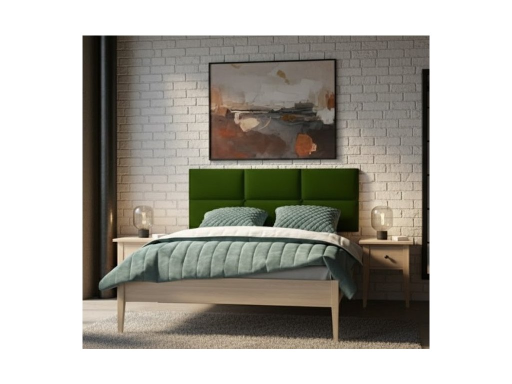 Buková postel ROMA NATUR vyniká designovým čalouněným čelem s volitelnou barvou potahu.