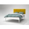 Buková postel ROMA White vyniká designovým čalouněným čelem s volitelnou barvou potahu.