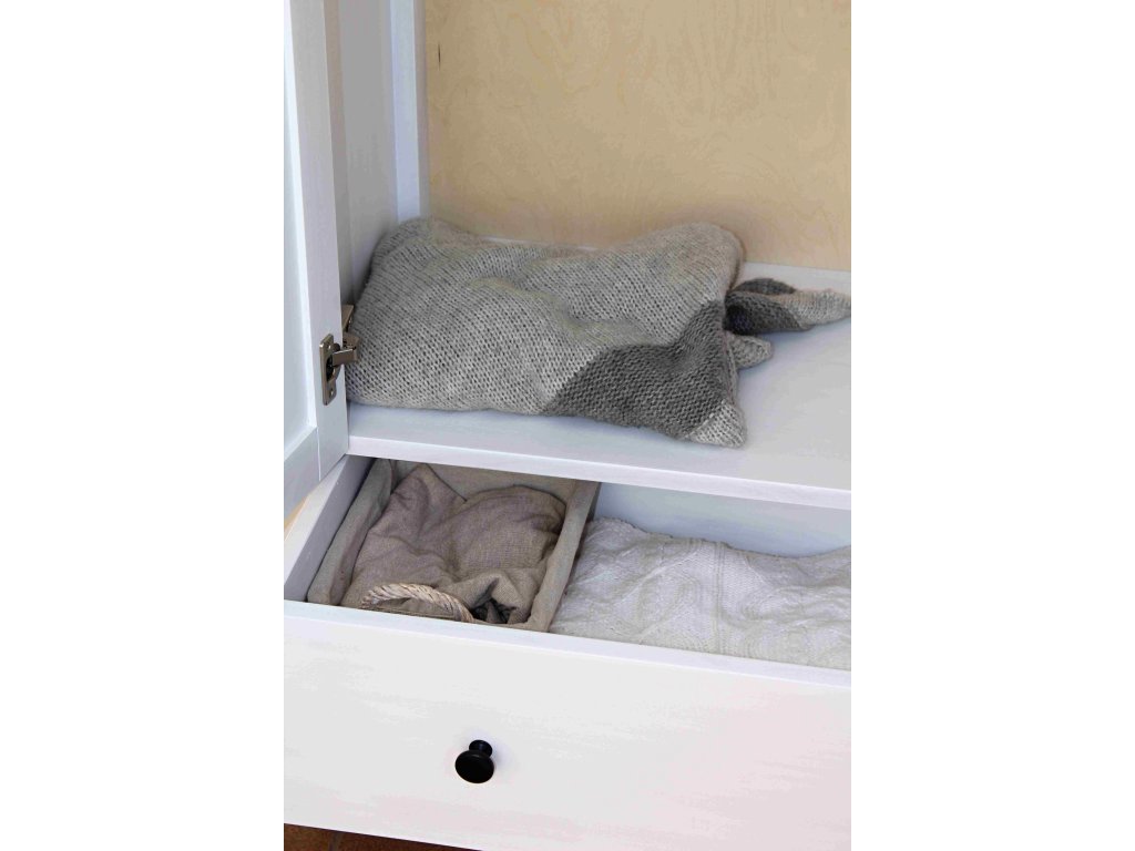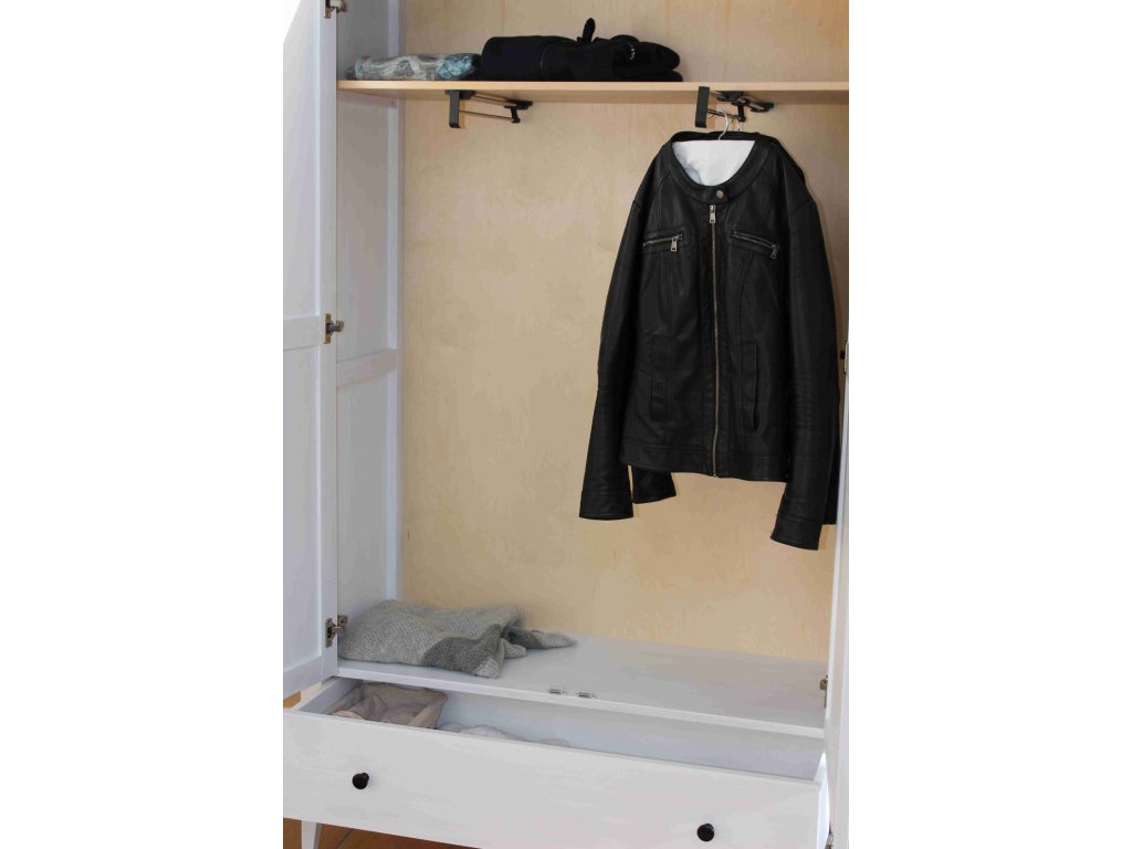 Bílá dvoudveřová skříň ROMA SST3PD z kvalitního bukového masivu s plnými dvířky představuje ideální volbu pro ty, kteří hledají odolný a nadčasový nábytek. Tato šatní skříň z masivu vyniká pevnou konstrukcí a elegantním skandinávským stylem, díky bílé barvě navíc opticky prosvětlí interiér. Skvěle zapadne do ložnice, pracovny, předsíně i studentského pokoje. Praktický prostor pod skříní (20 cm) je ideální pro snadný úklid robotickým vysavačem. Díky výrobě na zakázku lze skříň upravit jako nábytek na míru.