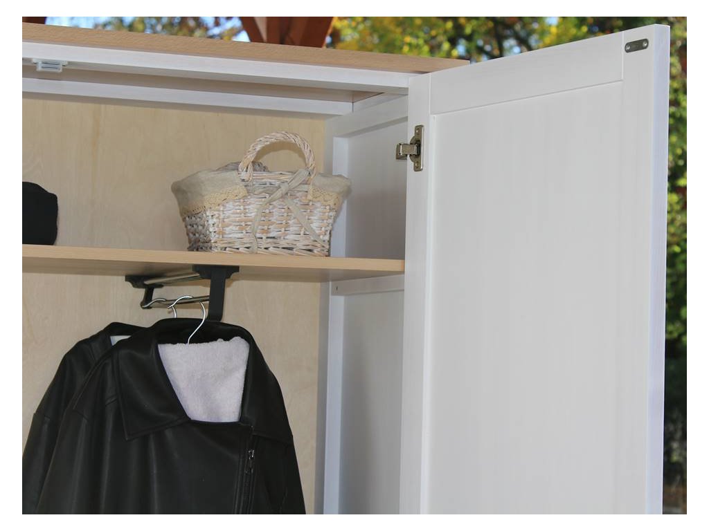 - 🔹 Výsuvná šatní tyč pro pohodlné zavěšení oblečení
