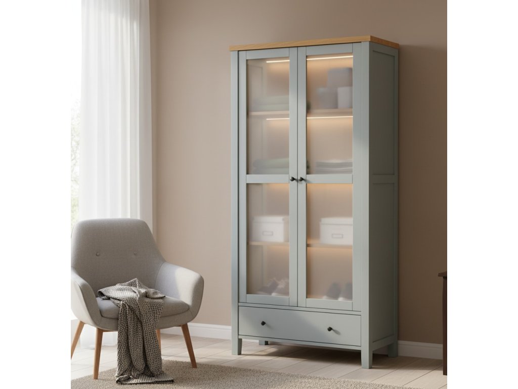 ✨ Inspirujte se v naší sekci realizací a podívejte se, jak může tato šedomodrá buková vitrína ROMA vypadat u vás doma.