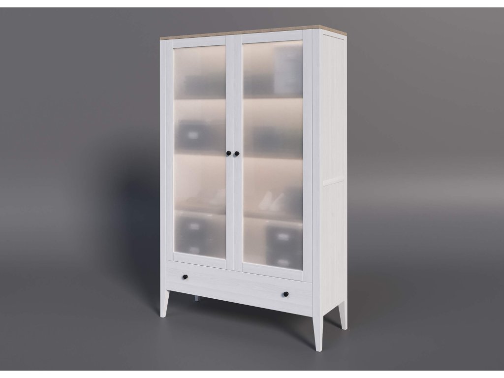 Bílá vitrína ROMA SST4 z kvalitního bukového masivu kombinuje moderní skandinávský styl s praktičností. Elegantní bílá barva prosvětlí každý interiér a díky proskleným částem získáte místo pro vystavení dekorací i nádobí. Tato vitrína z masivního bukového dřeva se hodí do obývacího pokoje, jídelny i pracovny. Praktický prostor pod skříní (20 cm) umožňuje snadný úklid – ideální i pro robotické vysavače.
