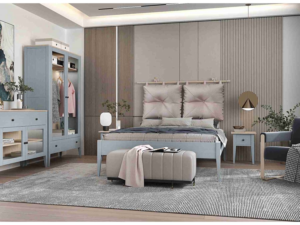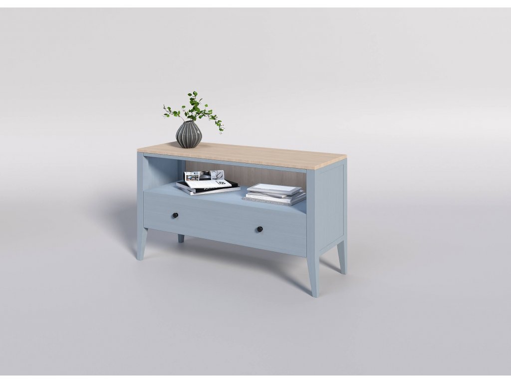 Masivní TV stolek ROMA KT3 šedomodrý je moderní televizní stolek z masivu, který se prezentuje jednoduchými liniemi a krásnou dřevitou kresbou.