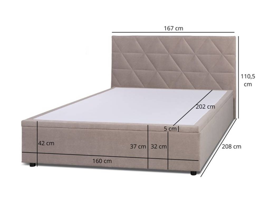 Ložná plocha 160×200 cm poskytuje dostatek prostoru pro komfortní spánek jedné i dvou osob. Pevná nosná konstrukce zajišťuje bezpečný a klidný odpočinek, a zároveň se díky nadčasovému designu snadno kombinuje s dalším nábytkem v místnosti.