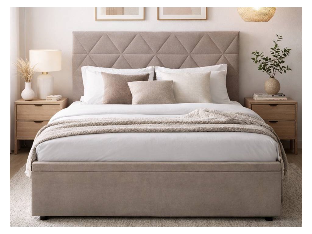 Čelo postele: laminovaná dřevotříska 15 mm, pěna T18, čalouněná látka mono 233 béžováÚložný prostor pro ložní prádlo: anoRám součástí balení: anoMatrace součástí balení: ne