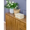 Dubová komoda OSLO je precizně vyrobena z dubového masivního dřeva. Povrch komody je ošetřen bezbarvým lakem.  Záda komody a dna šuplíků jsou z MDF desky.