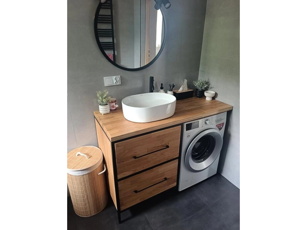 Dřevěná koupelnová skříňka na pračku MARGARET z dubového masivu