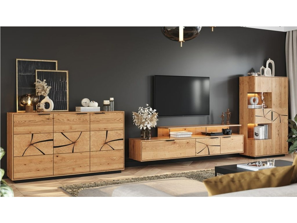 Masivní dubová komoda TIRANO 3D je moderní komoda z masivu, která kombinuje moderní funkčnost s teplým nádechem přírodního dubu. Tato masivní komoda vyniká elegantním designem a kvalitním zpracováním, dokonalá pro každý obývací pokoj, pracovny i ložnice.