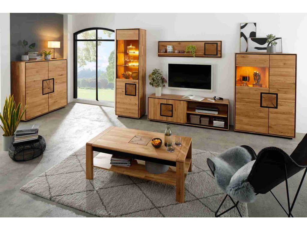 Masivní dubová vitrína Arizona 1P je nádherná vitrína která je vyrobena z dubového masivu což jí dodává mimořádnou pevnost, odolnost a jedinečný charakter. Její zajímavé detaily podtrhují její jedinečnost. Dvířka a zásuvky mají funkci tichého dovírání a přední strany jsou z kouřového skla ke kterým jsou doladěné černé detaily. Povrchová úprava olejem zvýrazňuje přirozenou strukturu dřeva. Masivní vitrína má jak skleněné police tak i dřevěné, které přímo vybízí k vystavení vašich oblíbených dekorací, porcelánů nebo knih, zatímco uzavřené prostory nabízejí praktické řešení pro vše, co chcete mít po ruce, ale ne na očích. Tento kousek je nejen praktickým úložným prostorem, ale i designovým doplňkem, který dodá vašemu domovu originalitu a eleganci s nádechem přírody.
