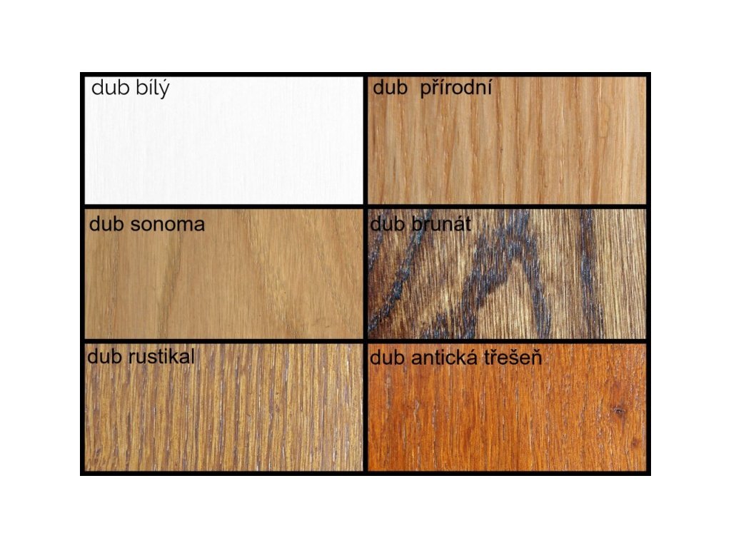 Dubový rozkládací jídelní stůl MINI nabízíme v barevných variantách a to jako dub přírodní, dub sonoma, dub brunát, dub rustikal, dub antická třešeň a dub bílý.