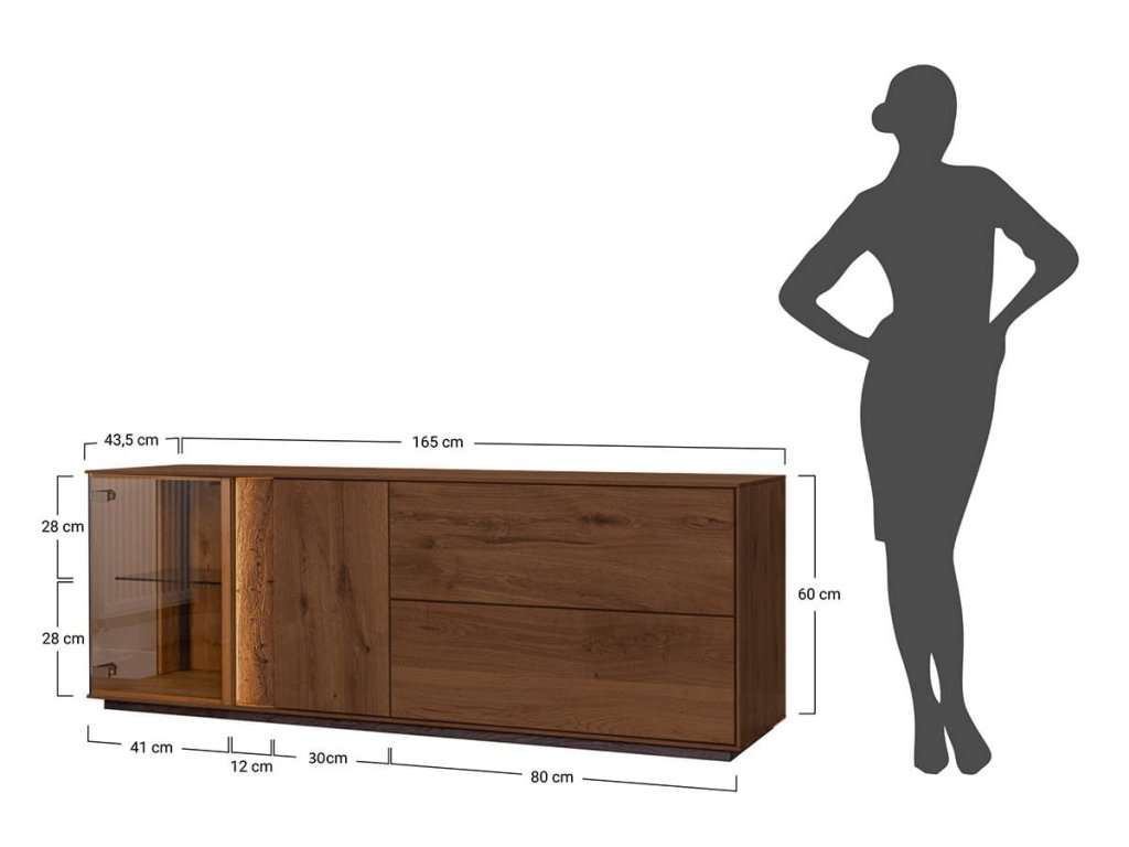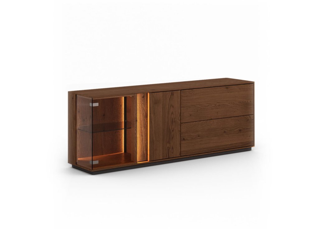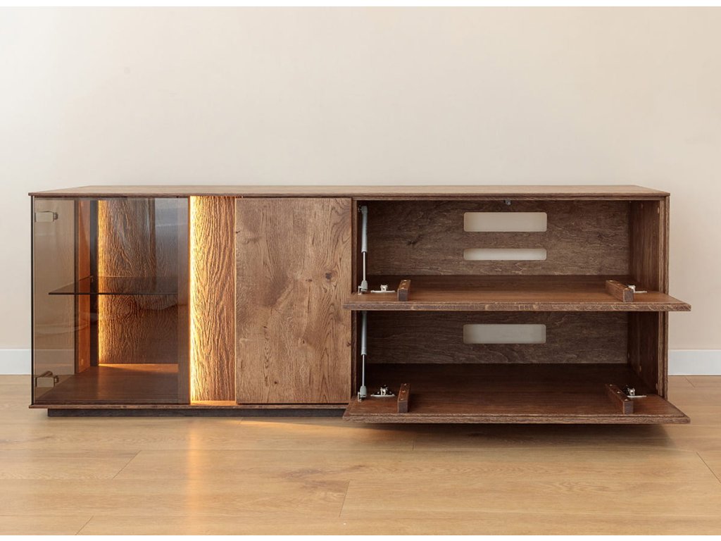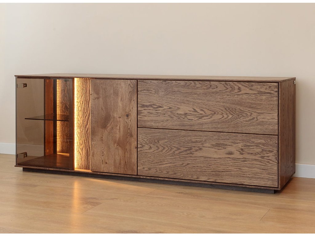 Dubový TV stolek SALVATORE Tabaco z masivu s osvětlením