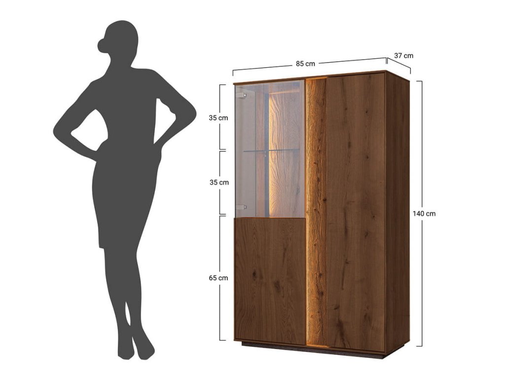 Vitrína z masivu najdete v kolekci SALVATORE, kde si můžete vybrat z více odstínů od přirozeně světlého dubu až po tmavší tabákový ton. Nábytek z dubového masivu je ošetřen kvalitním přírodním olejem, který zvýrazňuje přirozenou kresbu dřeva, chrání ho a zároveň podtrhuje jeho přirozenou krásu. Tato kolekce SALVATORE z dubového masivu vynikne ve vašem obývacím pokoji, pracovně nebo jídelně kde dodá přirozenou eleganci, teplo a nadčasový vzhled.
