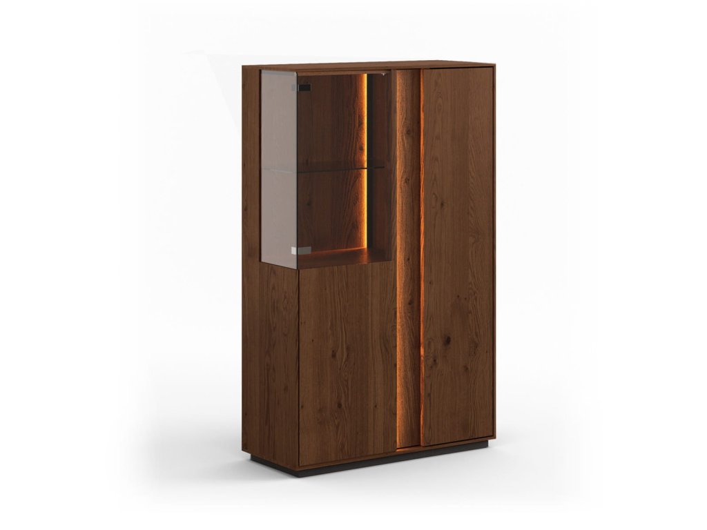 Dvoudveřová dubová vitrína SALVATORE Tabaco nízká s osvětlením