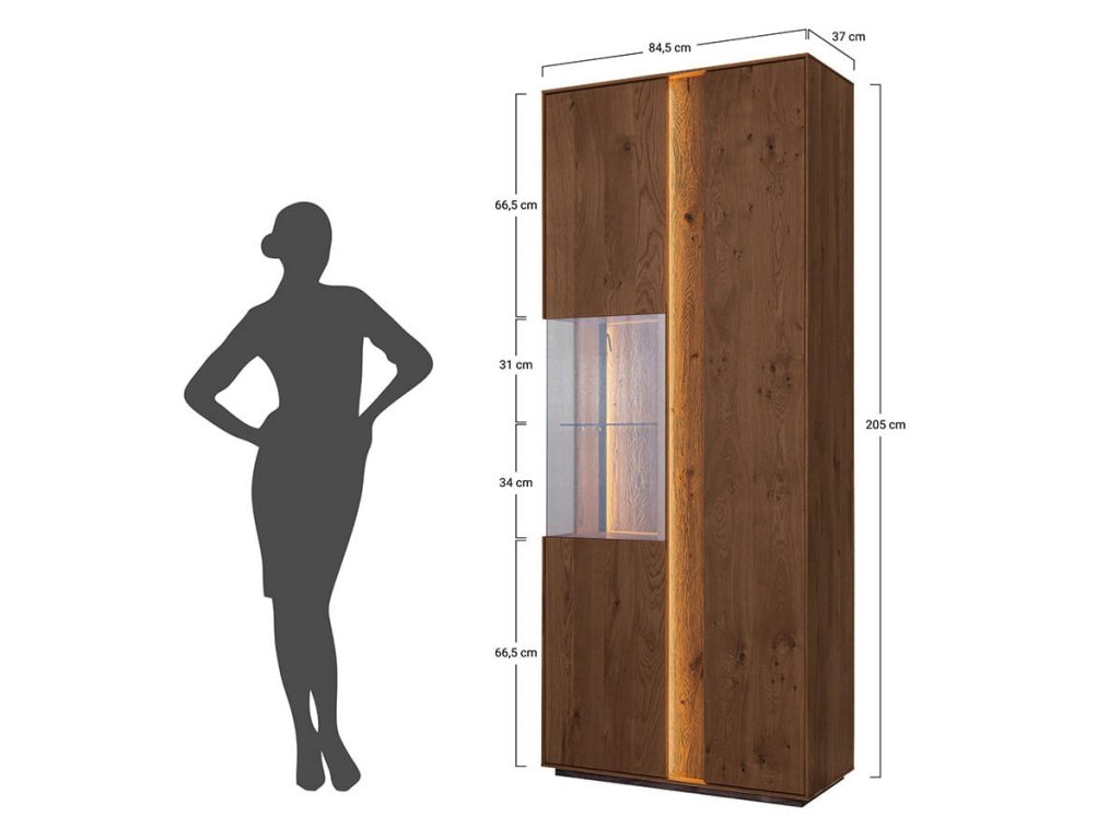Dubová vitrína SALVATORE Tabaco z masivu s osvětlením pravá