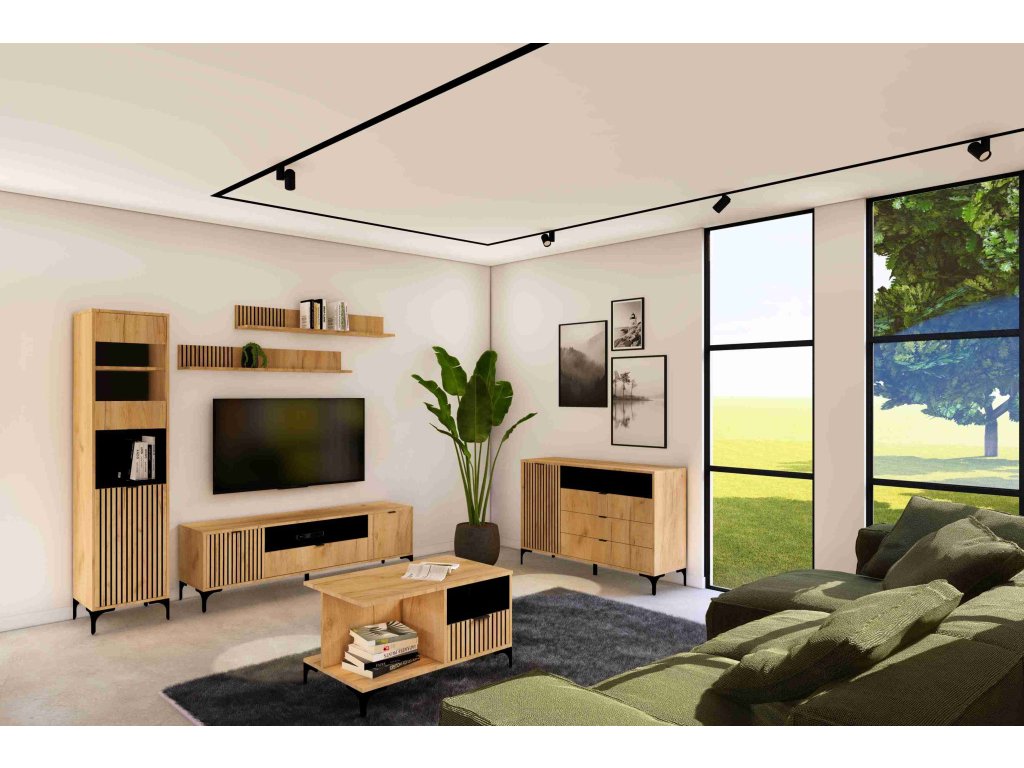 - ✓ Odolné materiály: Vyrobena z kvalitních nábytkových desek (MDF) s odolnou PVC hranou, které zaručují dlouhou životnost a snadnou údržbu. Robustní kovové nohy a akcenty dodávají stabilitu a podtrhují industriální charakter.