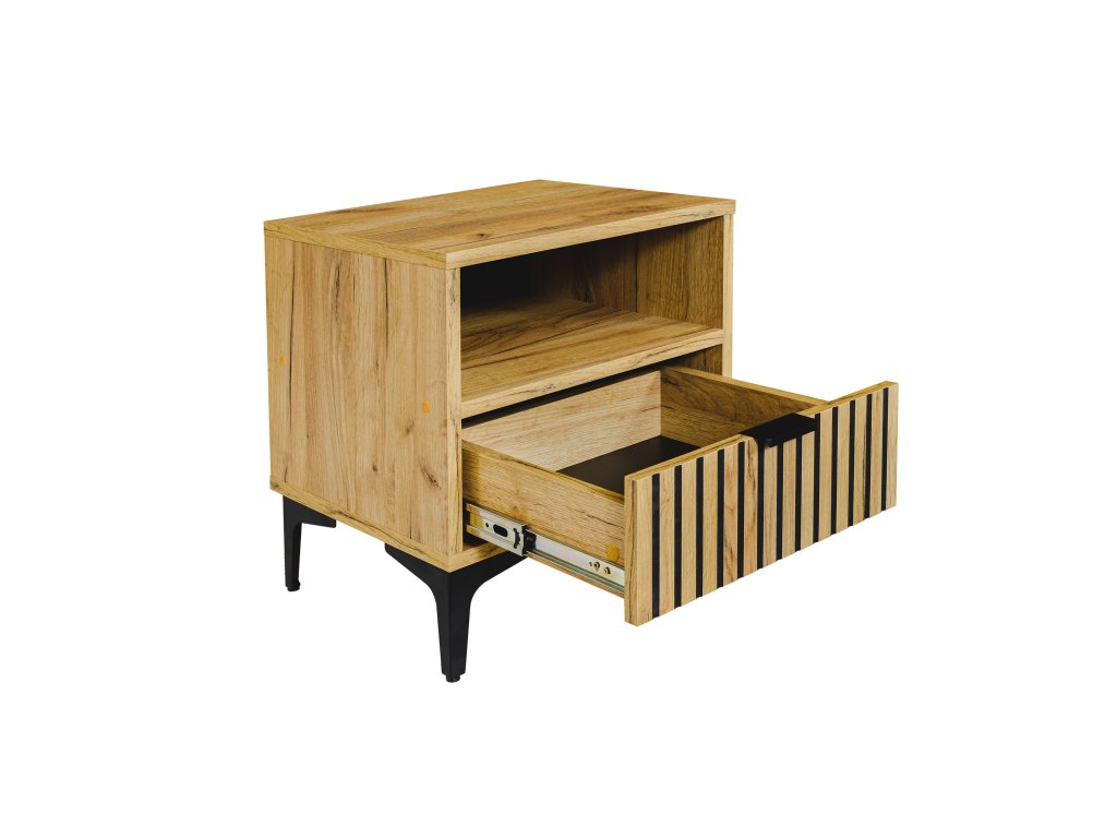 Stylová postel ELISE 90x200 cm v moderním industriálním stylu zaujme kombinací dekoru zlatý dub a černých kovových detailů. Charakteristické drážkované čelo dodává posteli originální vzhled a podtrhuje její jedinečný design.