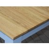 Masivní stůl PROVENCE je vyroben z masivního bukového dřeva a ošetřen akrylovou barvou. Vrchní deska je vyrobena z dubového masivu a ošetřena lakem.