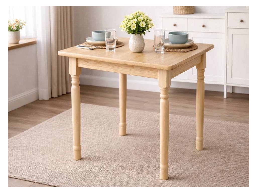 Jídelní stůl působí díky masivním vyřezávaným nohám velmi elegantně a masivně. Jistě se stane ozdobou vaší jídelny nebo pokoje. Tento jídelní stůl je vyroben z borovicového masívu a má přírodní barvu. Je vhodný i k nábytku z masivu jako jsou komody nebo vitríny. K tomuto stolu doporučujeme židle z masivu.