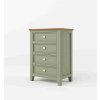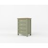Komoda z masivu PROVENCE je spojením bukového a dubového dřeva. Dubové dřevo (horní deska) je ošetřeno olejem a bukové dřevo je ošetřeno akrylovou barvou v olivové barvě. Šuplíky jsou bez pojezdu. Možnost objednání se systémem tichého dovírání (u šuplíků).