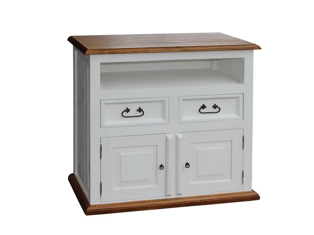 Masivní komoda z kolekce Sweet Home je originální nábytek ve venkovském stylu. Komoda z masivu je vyrobena z masivní borovice a ošetřena bílou vodou ředitelnou barvou. Horní hnědé plochy mohou být ošetřeny voskem anebo lakem.