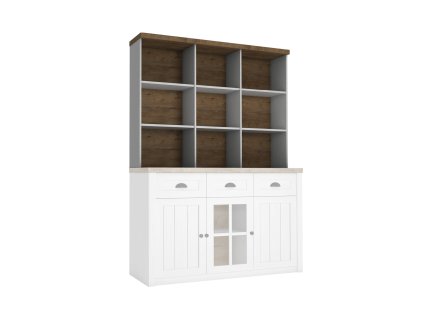 Nástavec komody Bellevie de France v Provence stylu v bílé barvě s kontrastní tmavou deskou a otevřenými policemi je krásným doplňkem ke komodě z lamina ve stejném...