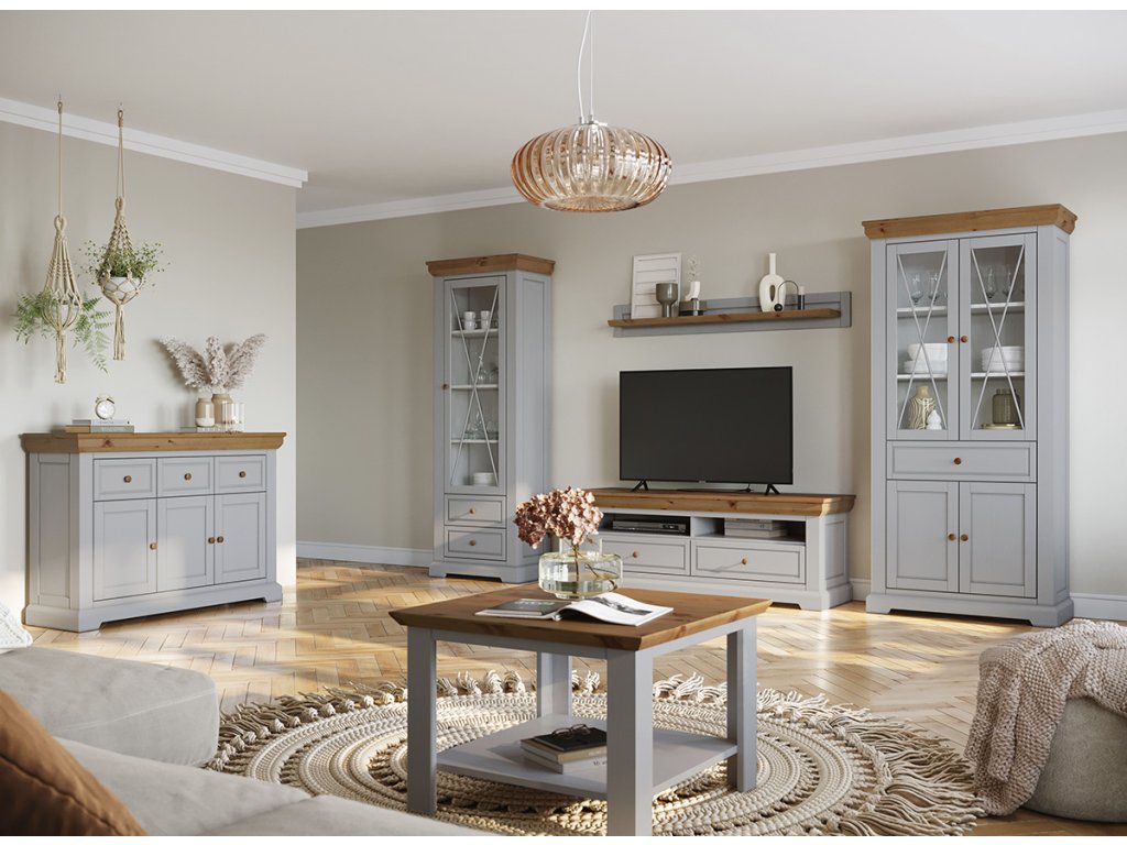 Konferenční stolek z masivu okouzlí svou přirozenou krásou borovicového masivu a jemným šedým tónem, který vdechne místnosti příjemnou a pohodovou atmosféru .