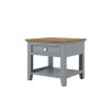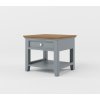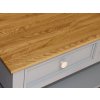 Konferenční stolek z masivu PROVENCE je spojením bukový a dubového dřeva. Dubové dřevo (horní deska) je ošetřeno lakem a bukové dřevo je ošetřeno akrylovou barvou v šedomodré barvě. Šuplík je bez pojezdu. Možnost objednání se systémem tichého dovírání (u šuplíků) - cena na dotaz.