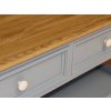 Masivní konferenční stolek PROVENCE je vyroben z masivního bukového dřeva a ošetřen akrylovou barvou v šedomodré bílé barvě. Vrchní deska je vyrobená z masivního dubového dřeva a ošetřena lakem.