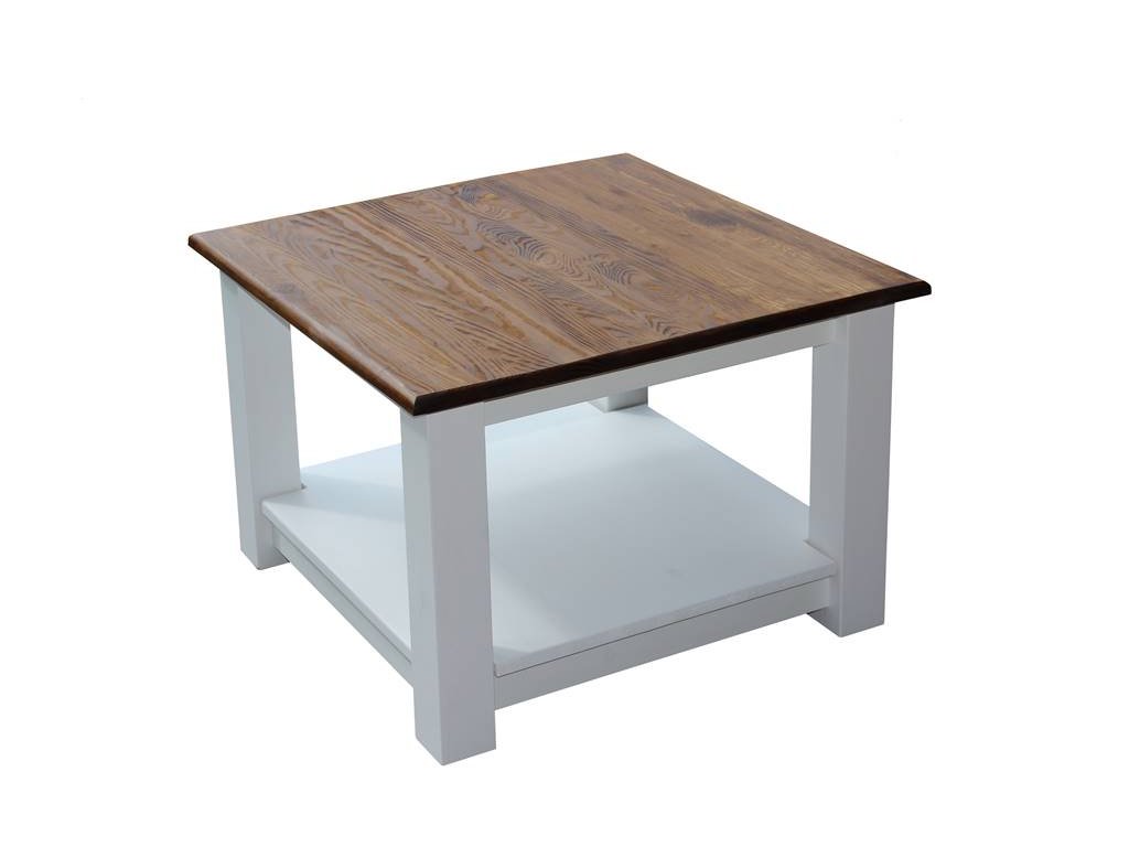 Rustikální konfereneční stolek je vyroben z masivní borovice a ošetřen bílou vodou ředitelnou barvou. Horní hnědé plochy mohou být ošetřeny voskem anebo lakem.