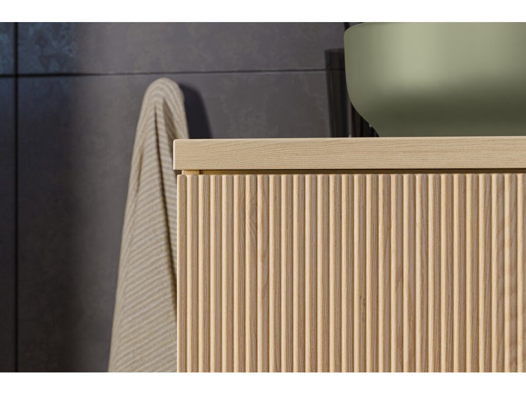 Skříňka nabízí dvě prostorné zásuvky, které poskytují dostatek místa pro uložení koupelnových doplňků a pomáhají udržet koupelnu přehledně uspořádanou. Komfort při každodenním používání zajišťuje systém tichého dovírání zásuvek, který zvyšuje pohodlí a chrání nábytek před opotřebením.
