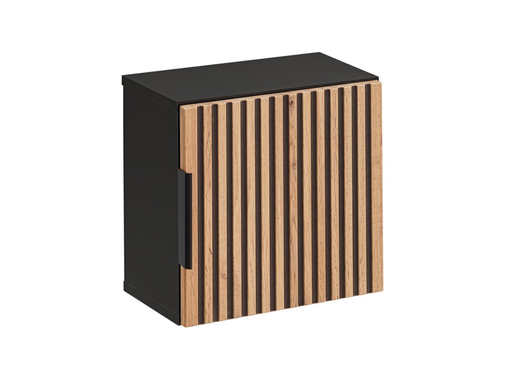 Malá závěsná skříňka do koupelny XILO 35x35 cm krásně doplní koupelny, do kterých vnese styl a nadčasovost v podobě praktického designu s vertikálním frézováním.