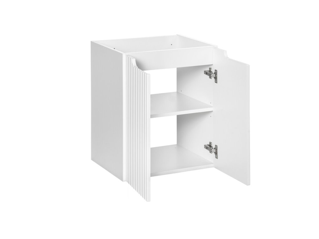Koupelnový nábytek NOVA WHITE nabízí praktický úložný prostor pro kosmetiku, ručníky a další nezbytnosti. Její povrch v lesklé bílé barvě je navržen tak, aby odolával vlhkosti a byl nenáročný na údržbu, což z ní dělá ideální volbu i pro koupelny s vyšším provozem.