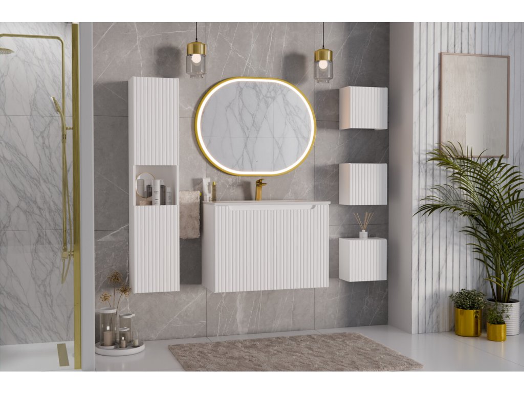 Koupelnový nábytek NOVA WHITE je moderní nábytek do koupelny, který kombinuje elegantní design s praktickým využitím. S čistě bílým povrchem, který dodává svěží a stylový vzhled, se tento nábytek hodí do jakékoliv koupelny. Nabízí dostatek úložného prostoru pro koupelnové potřeby a současně přináší do prostoru nádech sofistikovanosti a elegance.
