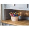 Provensálská kredenc PROVENCE je spojením bukového a dubového dřeva. Dubové dřevo (horní deska) je ošetřeno lakem a bukové dřevo je ošetřeno akrylovou barvou v bílé barvě nebo šedomodré barvě. Šuplíky jsou bez pojezdů. Možnost objednání se systémem tichého dovírání (u šuplíků).