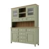 Masivní kredenc PROVENCE je vyrobená z masivního bukového dřeva a ošetřená akrylovou barvou v olivovém odstínu. Vrchní deska je vyrobená z masivního dubového dřeva a ošetřená lakem.