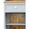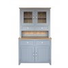 Masivní kredenc PROVENCE je vyrobena z masivního bukového dřeva a ošetřena je akrylovou barvou v šedomodré barvě. Vrchní deska je vyrobená z masivního dubového dřeva a ošetřena je lakem.